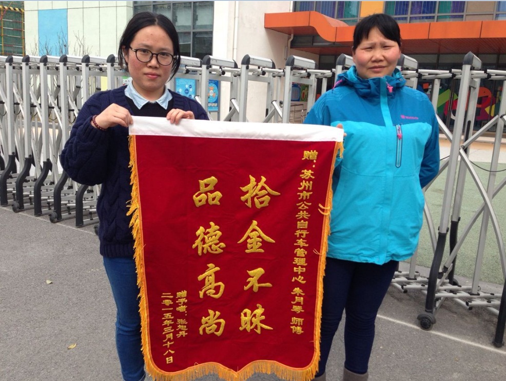 2015年3月2日,我公司員工朱師傅在錦荷苑站點巡查時,撿到市民的聯想筆記本電腦一臺,朱師傅在該站點等了近一小時,未見失主前來認領,就主動上交公司。公司及時聯系市民并將電腦歸還,市民對我們公司及朱師傅予以高度的贊揚,并贈送了旌旗以示感謝。