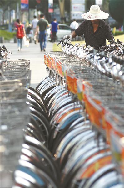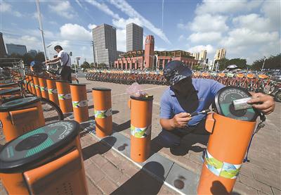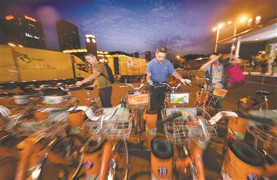 9月10日17點,南京興隆大街地鐵站公共自行車管理員老匡和老戴迎來了一天最忙碌的時候,他倆在空樁和轉運車之間來回穿梭,不一會兒就滿身大汗。與此同時,轉運車奔波于各站點之間,根據流量調整車輛配置。
