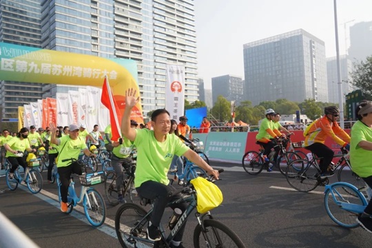 天朗氣清,湖波蕩漾,在全國場地自行車錦標(biāo)賽冠軍唐佳雯、沈燕的鳴笛發(fā)令下,騎行正式開始。榮譽騎行隊和大眾騎行隊先后出發(fā),以湖景街東太湖大道路口為起點,沿太湖而行,領(lǐng)略灣區(qū)魅力,感受新城風(fēng)光。