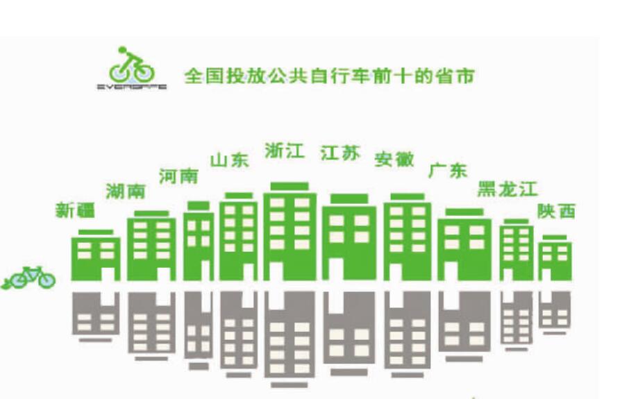 據數據顯示,浙江、江蘇、山東、河南、安徽開展公共自行車的縣市數量位居前五位,湖南、廣東、黑龍江、新疆、陜西緊隨其后。
