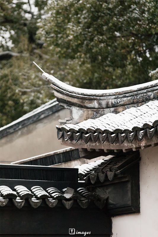 青色屋檐披上了白紗