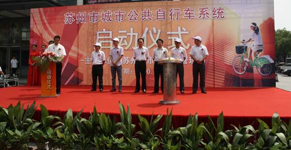 2010年8月30日,在蘇州金逸電影院廣場舉行了啟動儀式。廣場上集中停放著60輛嶄新的“綠色”公共自行車,在正式啟動之后,志愿者們做了首次體驗,紛紛騎上車,將車停放回各個停車點。首批投入200輛自行車,在主干道人民路沿線設11個站點。市民和游客分別繳納200元、300元押金即可辦理租車卡,在任一站點可刷卡租車,通借通還。市民卡第一小時免費,之后每小時1元。每輛車使用者都有2萬元的意外傷害保險。年內,蘇州還將建成第二批站點,形成覆蓋居民區、公交站、商業街、酒店賓館、旅游景點的公共自行車網絡。