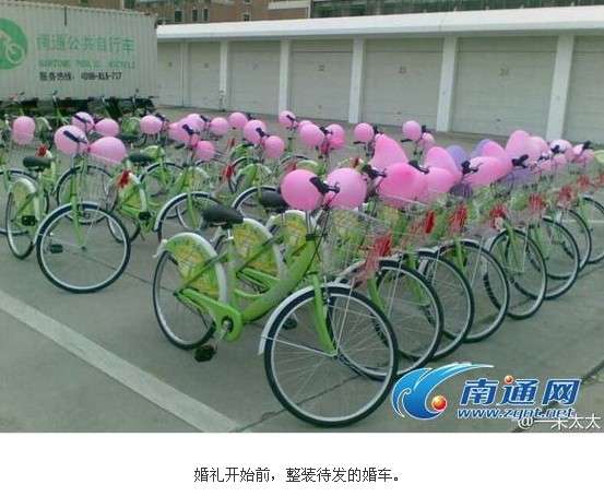 2011年10月26日,一場別開生面的自行車騎行婚禮在南通開發(fā)區(qū)上演?;槎Y主角——新郎朱吉鵬和他的新娘瞿曉波雙雙騎上自行車,在親朋好友的陪伴下沿著開發(fā)區(qū)主要道路騎行一周,低碳、綠色的自行車騎行婚禮吸引了眾多市民的眼球。