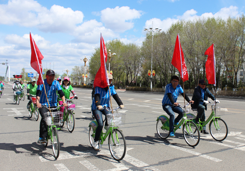 5月16日,由黑河市委統戰部、九三學社黑河市委聯合舉辦,黑龍江省騎游協會黑河分會承辦的“黑河中俄邊境騎游大會”暨全民健身自行車騎游活動在黑河市區世紀廣場拉開帷幕。本次活動使用的公共自行車堪稱活動的一大亮點,整齊劃一的公共自行車從馬路上飛馳而過,在藍天白云的映襯下顯得格外靚麗,風采無限。