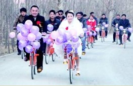 “現(xiàn)在國家正提倡節(jié)儉環(huán)保,騎自行車結婚既不鋪張浪費又綠色環(huán)保,很有意義的!”一旁的新娘馬蘭霞說,他們選擇自行車作為婚車,覺得也是一種創(chuàng)新,對一輩子一次的婚禮來說也比較有紀念意義,以后想起來,記憶會更深刻。