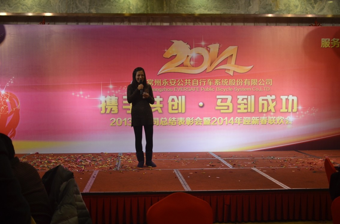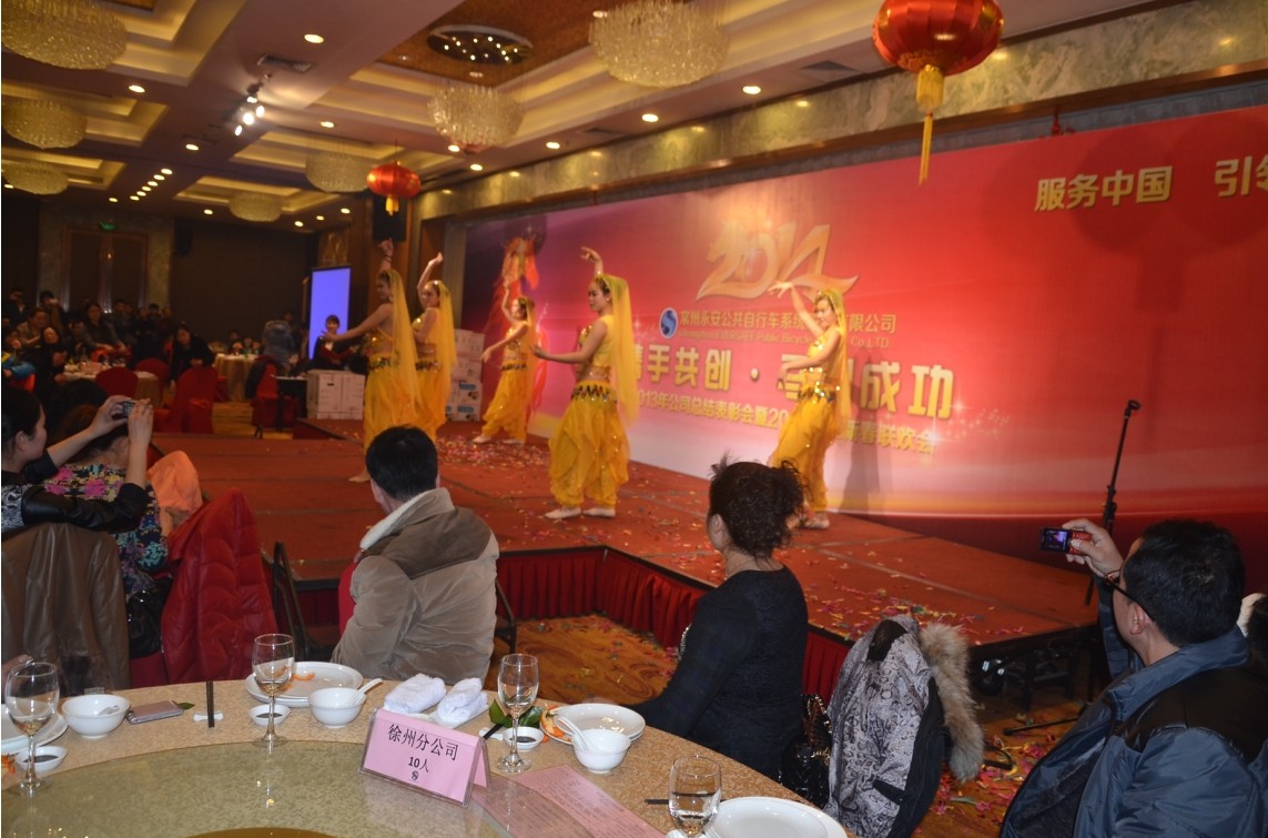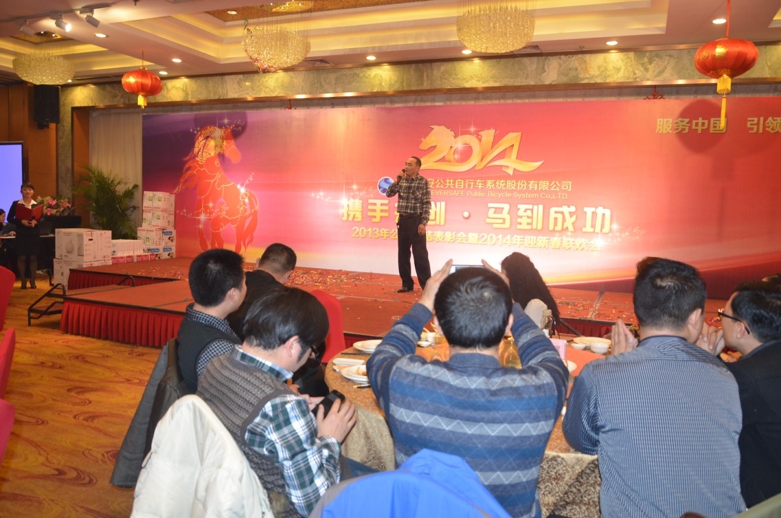 窗外寒風嗖嗖,我們的聯(lián)歡會現(xiàn)場卻是一片春意濃濃。全體同事歡聚一堂,興致頗高,年會融入了輕松、和諧的聯(lián)歡氣氛,以年會及娛樂為一體,使整堂年會充滿了愉快溫馨。在會上,公共自行車公司董事長發(fā)表了熱情洋溢的講話,為我們描繪了振奮人心的發(fā)展藍圖。并為2013年的優(yōu)秀部門及優(yōu)秀員工頒發(fā)了榮譽證書。接下來的公司聯(lián)歡演出更是熱鬧非凡,公司員工載歌載舞,小品、抽獎、互動游戲層出不窮,特別是蘇州分公司優(yōu)秀員工代表唱的一首《甜蜜蜜》更是暖入人心。聯(lián)歡會現(xiàn)場歡聲笑語響成一片。