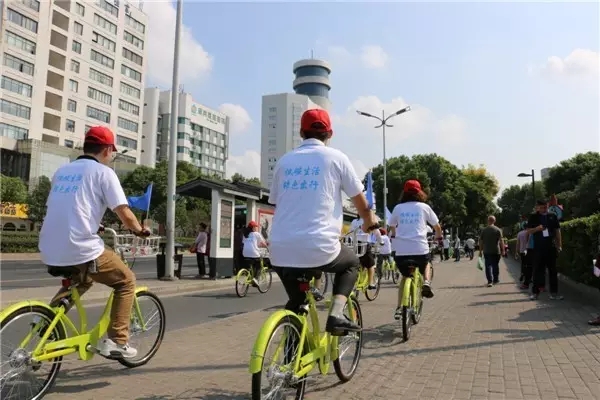 他們是蘇州市容市政系統青年志愿者們,今天是世界無車日,蘇州市市區道路停車管理所開展了公共自行車騎行宣傳活動,為宣傳綠色出行添磚加瓦。