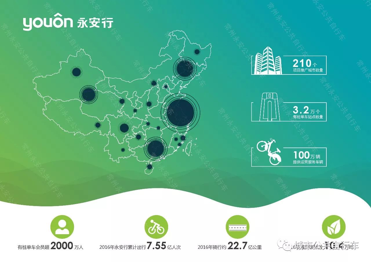 好在第三個項目終于盈利,讓公司渡過了危機,并在2012年獲得了風(fēng)投的2000萬元資金注入。有了資金的支持,永安行順勢將有樁共享單車模式迅速復(fù)制到全國200多個城市,北起黑龍江黑河市,南至海南省海口市,東起上海松江,西至新疆阿克蘇,都有永安公共自行車系統(tǒng)。