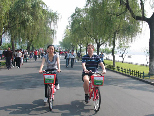 筆者還發現,與往年不同的是,在綠道上有不少市民騎著公共自行車悠閑地騎行。吳先生說,公共自行車租賃系統可以通借通還,非常方便。“在大自然的環境里騎行既可以放松自我,又能欣賞到沿途美麗的風光,實在是過年休閑的好去處。”
